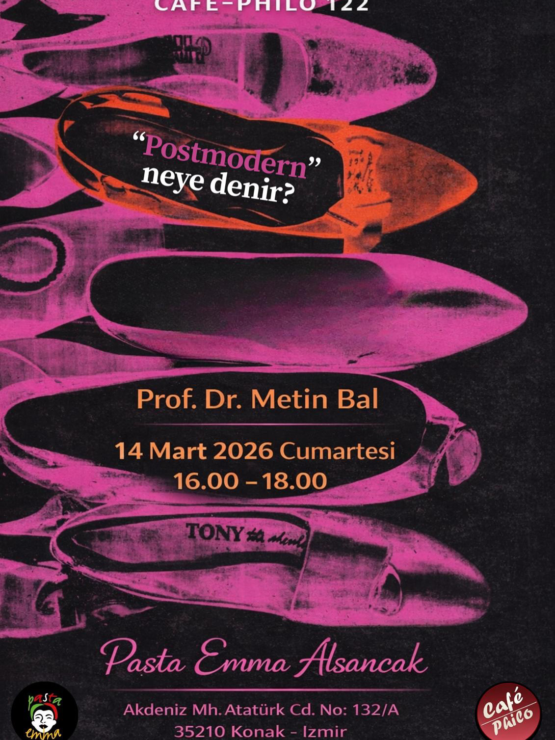 Tarih: 14 Mart 2026 Cumartesi, Saat: 16.00 - 18.00 Yer: Pasta Emma Alsancak, Akdeniz Mh. Atatürk Cd. No: 132/A 35210 Konak - İzmir